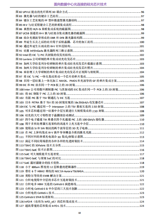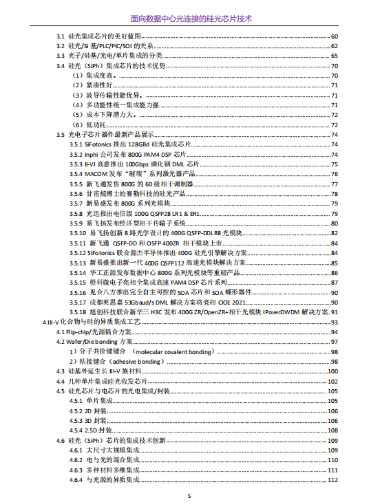 虽然近年来硅光子市场前景看好,但在材料、工艺和设计上依然面临一系列挑战。按照硅光集成使用的材料体系分类,光电集成可以分类为单片同质集成与异质集成。在单片同质集成方面,例如基于硅基材料构建光电集成芯片、基于磷化铟材料的滤波器集成等。而且,异质集成能够发挥各种材料的优势,提升各功能器件的性能。根据是否进行异质材料生长,异质集成可分为单片异质集成与混合异质集成。通过外延生长在硅基衬底上可以制备大规模集成的单片III-V族-硅基激光器,以及单片III-V族-硅基量子点激光器阵列。混合集成的优势在于避免了不同材料间的晶格失配,工艺相对简单,但是集成度较低。其关键工艺技术是利用光子引线键合技术、分子晶圆键合技术、硅通孔技术进行光互联与电互联实现光电混合集成。